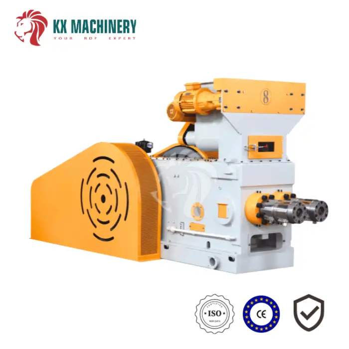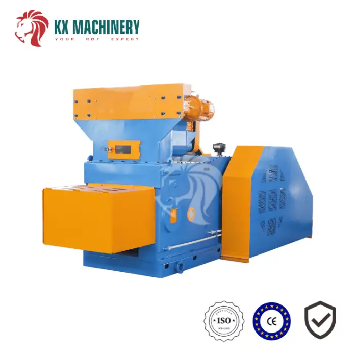 The machine produces cylindrical briquettes with a final product size ranging from 7 to 70 mm.