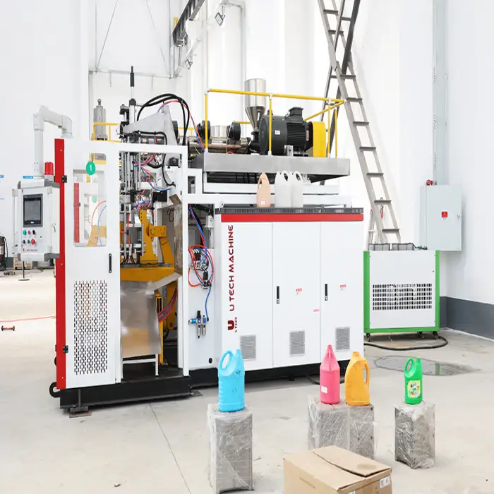 Industries such as packaging, toy manufacturing, and recreation can benefit from using this extrusion blow molding machine.