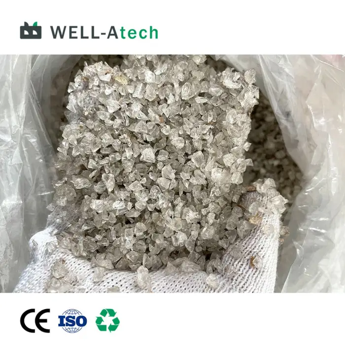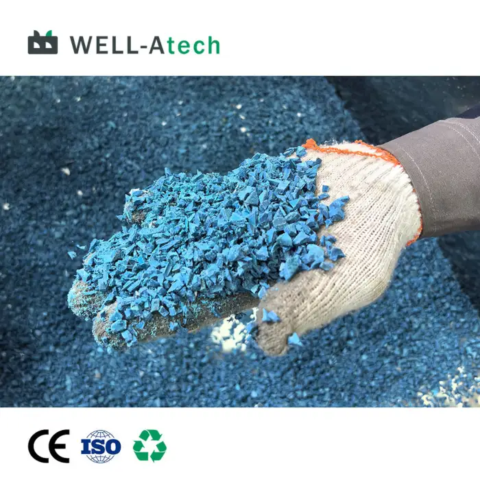 The final product is small plastic scraps that can be further processed or recycled.