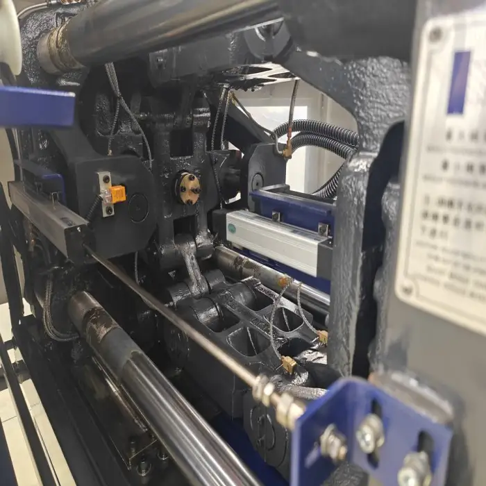 The robust hydraulic system enhances efficiency and precision during the injection molding process, allowing for high-quality product output.