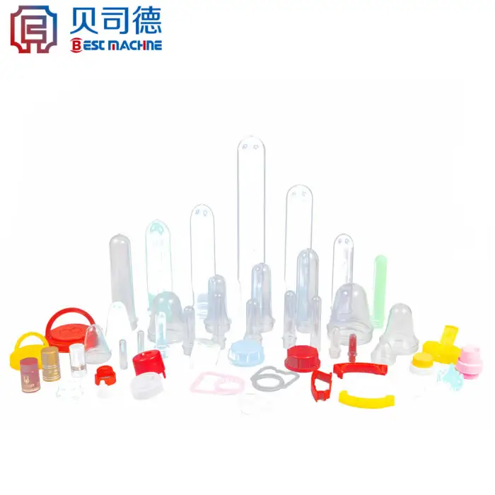 The Plastic PET Preforms Injection Molding Machine can process a wide range of plastic materials including PP, PC, ABS, PET, PVC, FRPP/PVC, PPR, EVA, HDPE, MLLDPE, EPS, PA, Polystyrene, PE, LDPE, EVOH, HDPE/PP, ABS/PP, PE/PP, Polylactic Acid, and TPU.