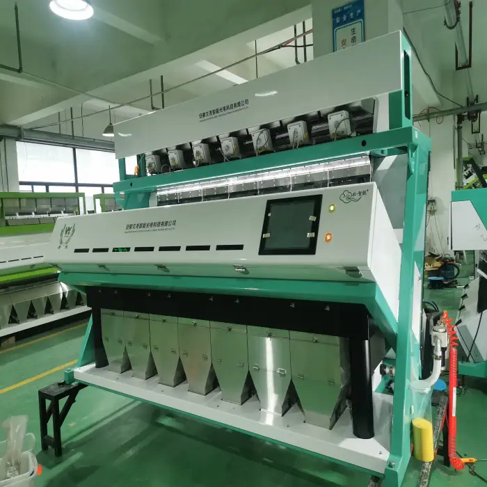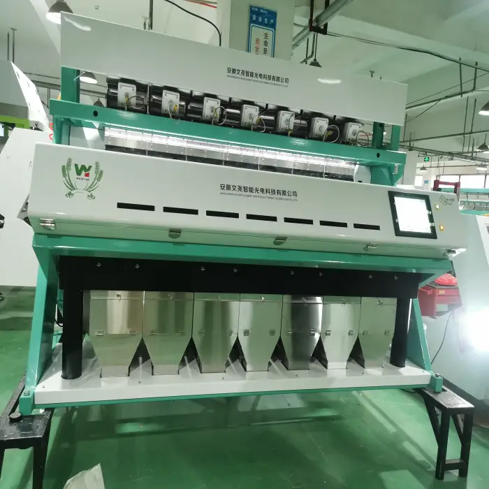 The machine uses CCD cameras and LED lamps for high-accuracy sorting.