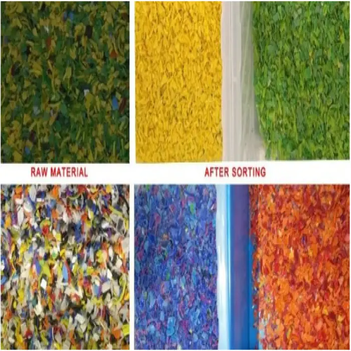 This machine is specifically designed for sorting PET flakes, but it may be adaptable for use with other types of plastics.