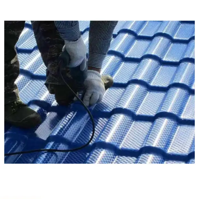 The machine is suitable for manufacturing PVC roofing tiles for residential buildings, commercial construction, and eco-friendly roofing solutions.