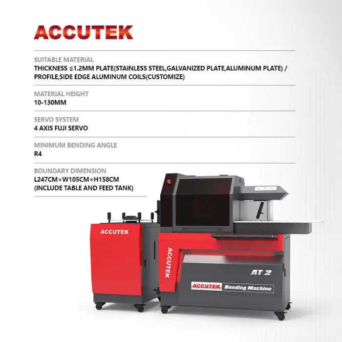 The machine is designed to bend stainless steel, aluminum, and galvanized steel.