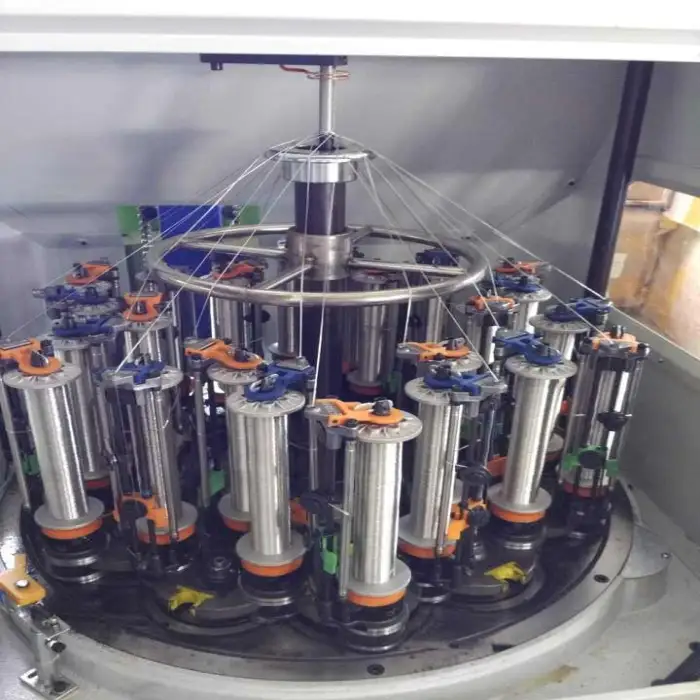 The Plumbing Hose Braiding Machinery is designed to efficiently handle flexible materials, specifically chemical fibers, making it suitable for a variety of plumbing applications.