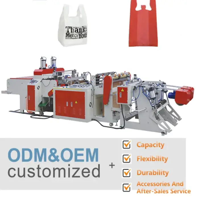 The machine is designed for efficient bag sealing and cutting, enabling high production capacity to meet business demands.
