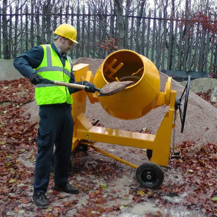 Daily tasks: clean the drum and hopper after use, check and tighten fasteners, inspect the pump and hoses, and check fuel/oil levels. Periodic tasks: change gearbox and engine oils per the manual, grease bearings and moving parts, inspect gears and wear plates, and replace worn components. Follow the manufacturer’s maintenance schedule for intervals and recommended fluids.