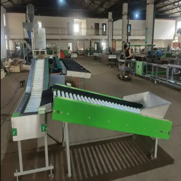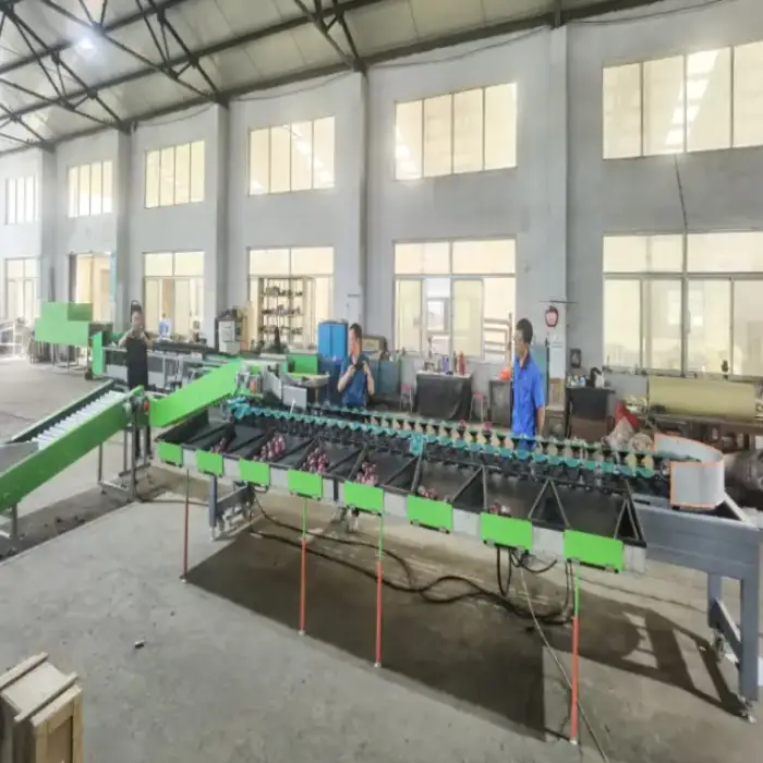 The machine utilizes advanced sorting technology to categorize produce based on weight, ensuring precise grading for optimal quality control.