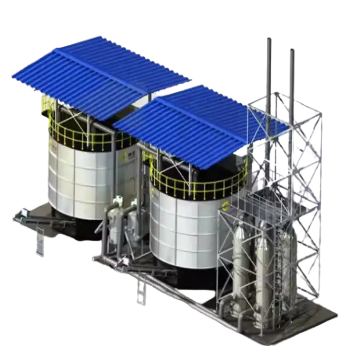 The tank includes features like a bottom blower, hydraulic station, induced draft fan, and auxiliary heater for enhanced performance.