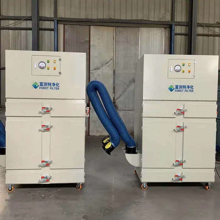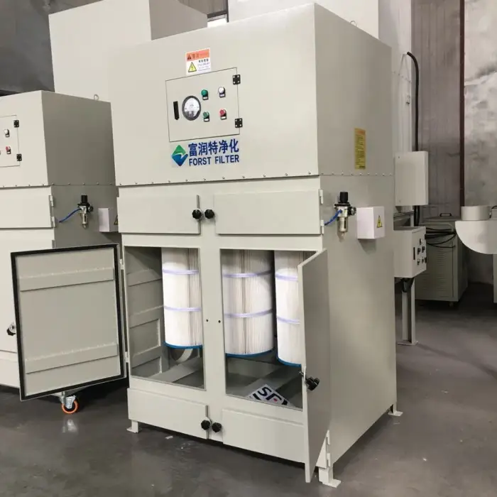 This dust collector uses a cartridge filter made from polyester PTFE antistatic material.