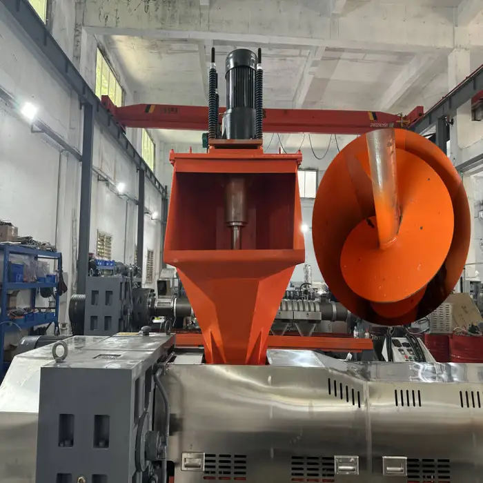 The robust single screw design enables effective processing of various plastic materials, enhancing the machine's efficiency.