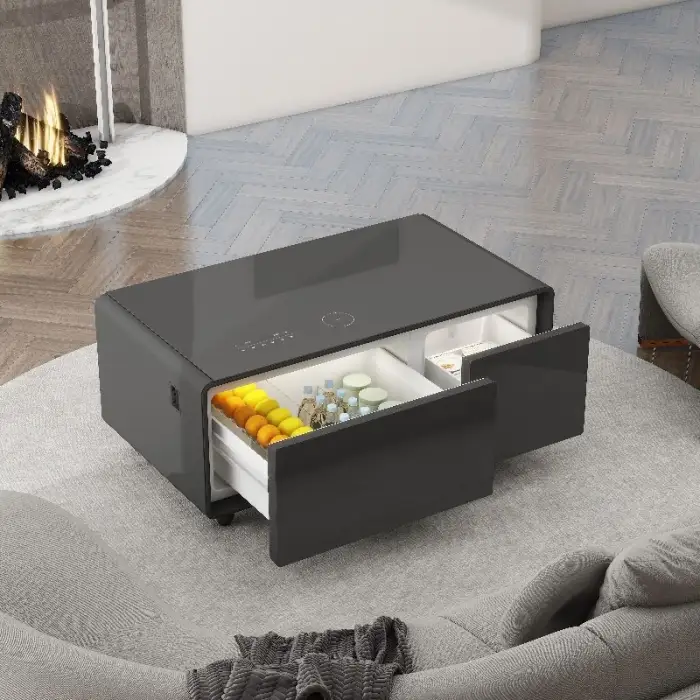 In addition to being a coffee table and mini bar, it has a boiler socket, dual refrigerators, and USB charging capabilities.