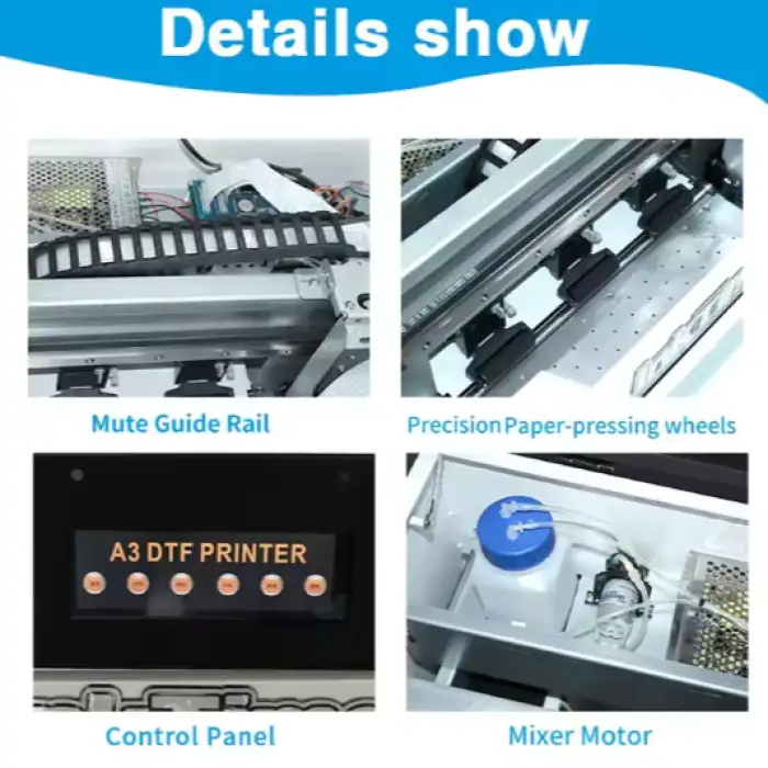 Common consumables include DTF pigment inks, PET transfer film, hot-melt adhesive powder, replacement printhead parts (as needed), cleaning solutions, and a heat press for final transfers.