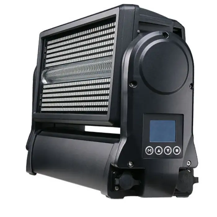 It supports DMX512, voice control, and self-propelled modes.