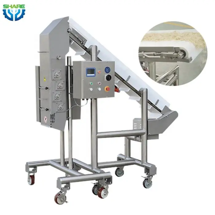 The belt speed of the Pulled Pork Processing Machine is 7 m/min, facilitating quick processing of meat.