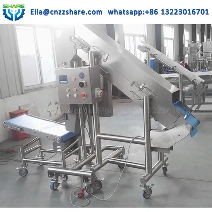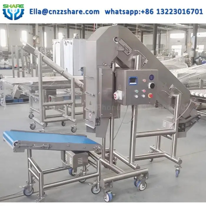 The machine has a capacity of 200-400 kg/h, allowing for fast processing of large quantities of meat.