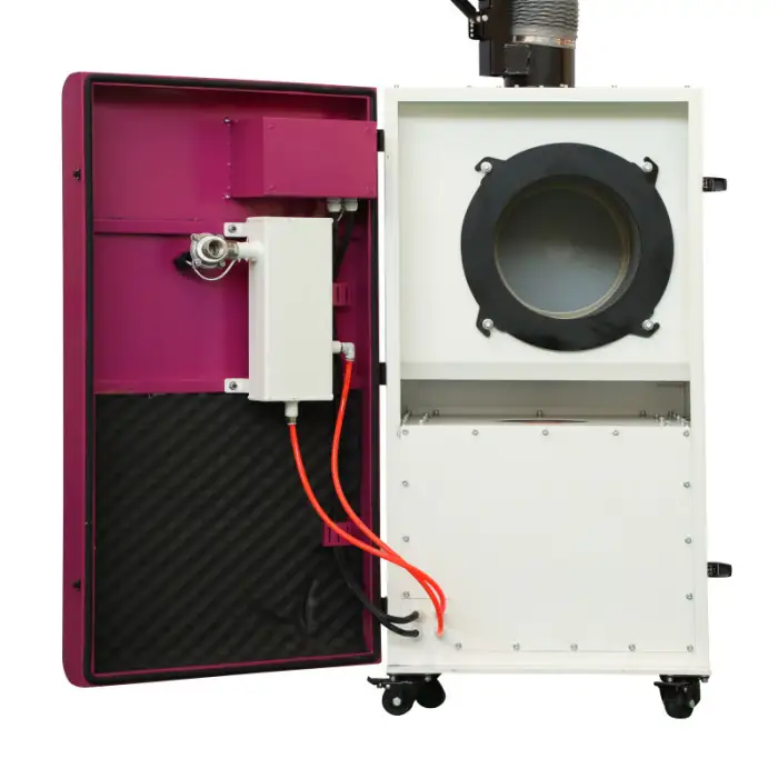 The Pulse Jet Clean Industrial Fume Cleaner features a high filter efficiency of 99.9%, ensuring that your workspace remains clean and safe from harmful dust and fumes.