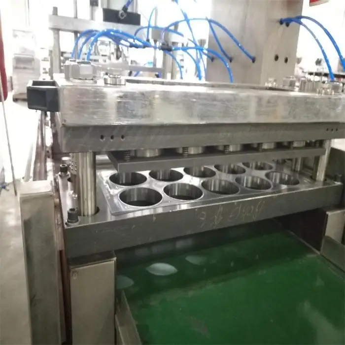 The machine can be used for manufacturing lids for paper and plastic cups, producing packaging for food and beverages, and creating custom cup lids for various industries.