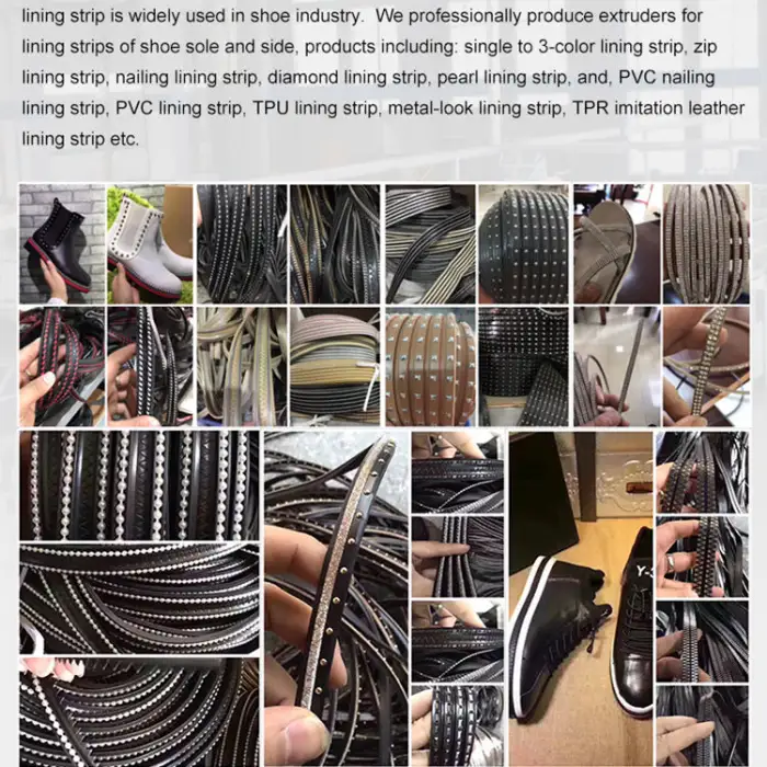 The main function of the PVC Shoe Welt Plastic Extruder Machine is to produce imitation leather plastic shoe strips and welts for various types of footwear.