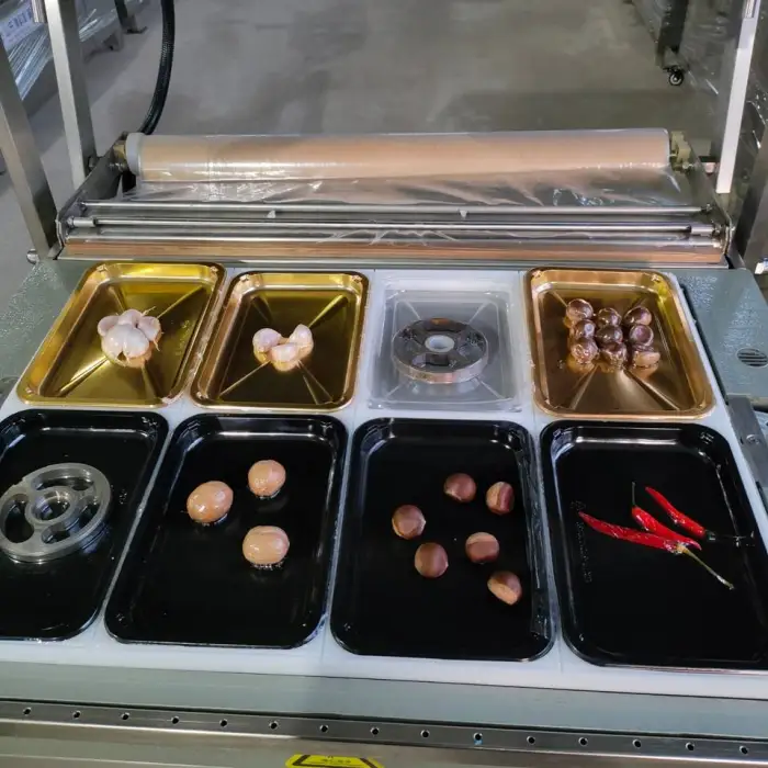 This machine is ideal for vegetable processing, meat processing, dairy products factories, and ready meal packaging operations.