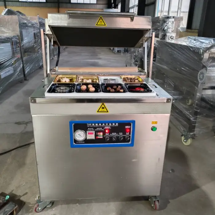 The Raw and Cooked Food Skins Vacuum Packaging Machine is versatile and can package various food types, including jujube skins, steaks, vegetables, and ready meals.