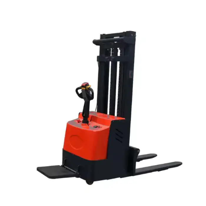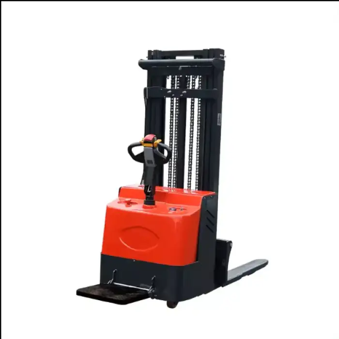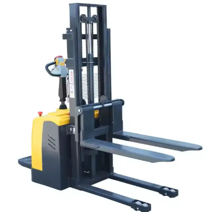 Yes, the electric stacker is designed for both indoor and outdoor use, thanks to its terrain adaptability.