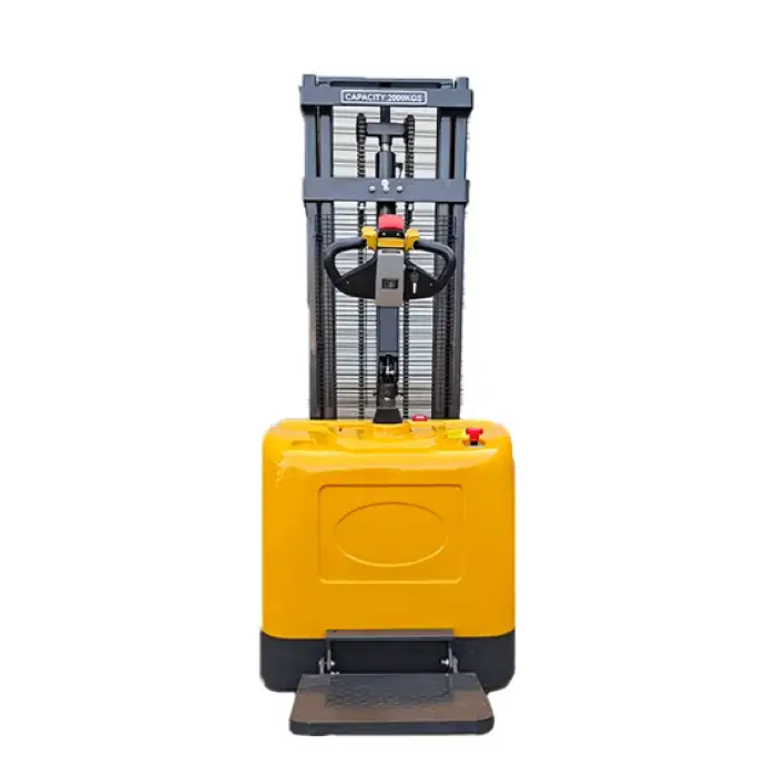The Reach 2 Ton Electric Stacker has a maximum load capacity of 2 tons.