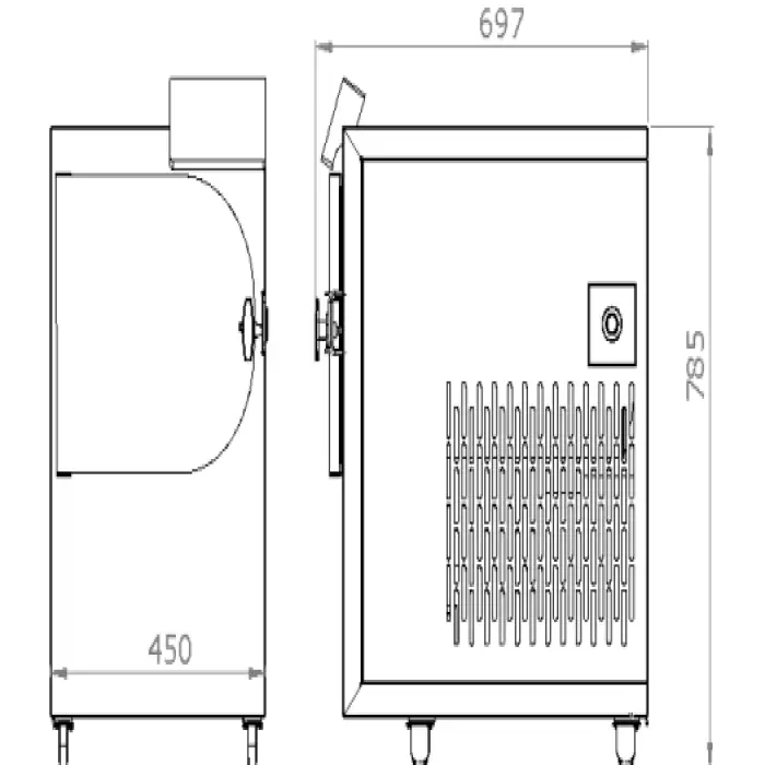 The dimensions of the freeze dryer are 450mm x 697mm x 785mm (27.4 x 17.7 x 30.9 inches) and it weighs 60 kg (128 lbs).