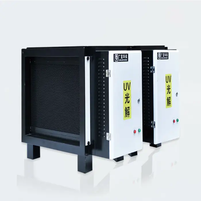The primary function of this equipment is to clean the air in commercial kitchens by effectively removing odors using advanced UV light and electrostatic technology.