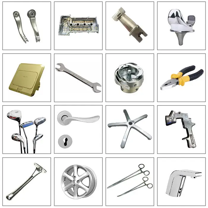 The machine can process a wide range of parts including sanitary ware, hardware accessories, auto parts, and various tools.