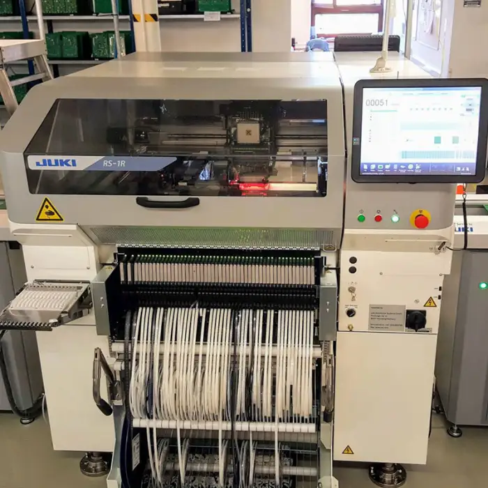 The RS-1R JUKI machine is equipped with 8 mounting heads for efficient and precise component placement.