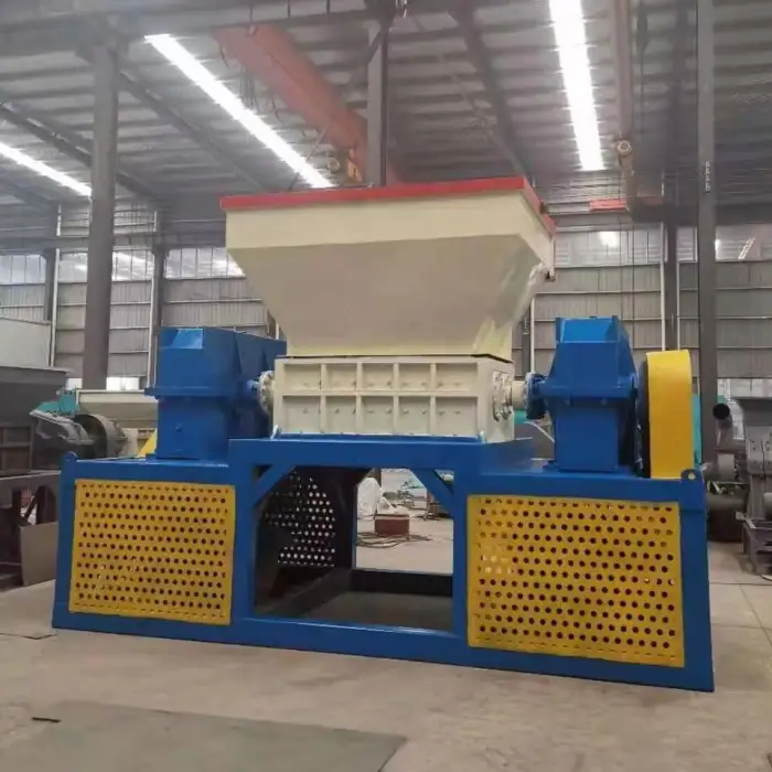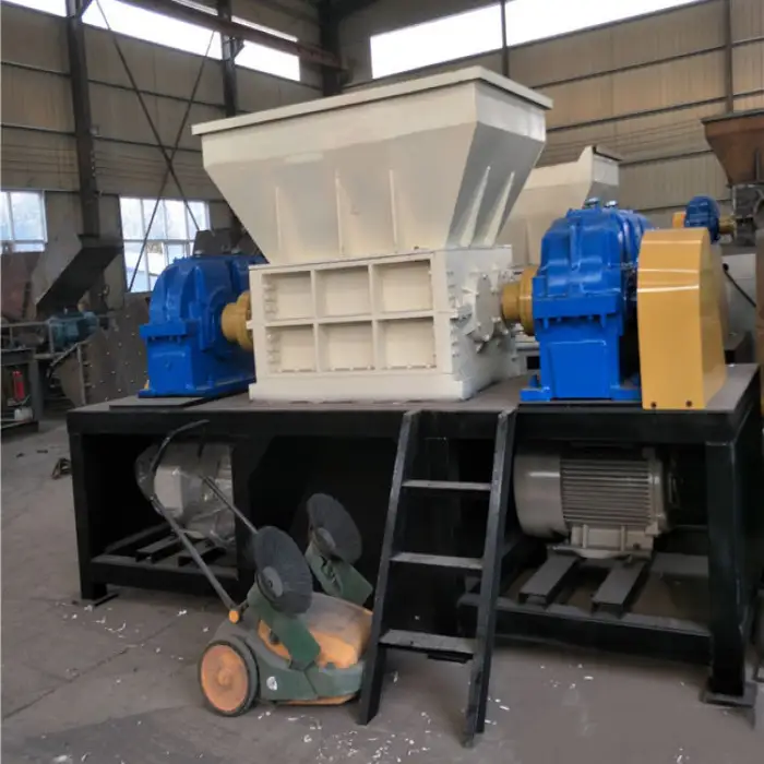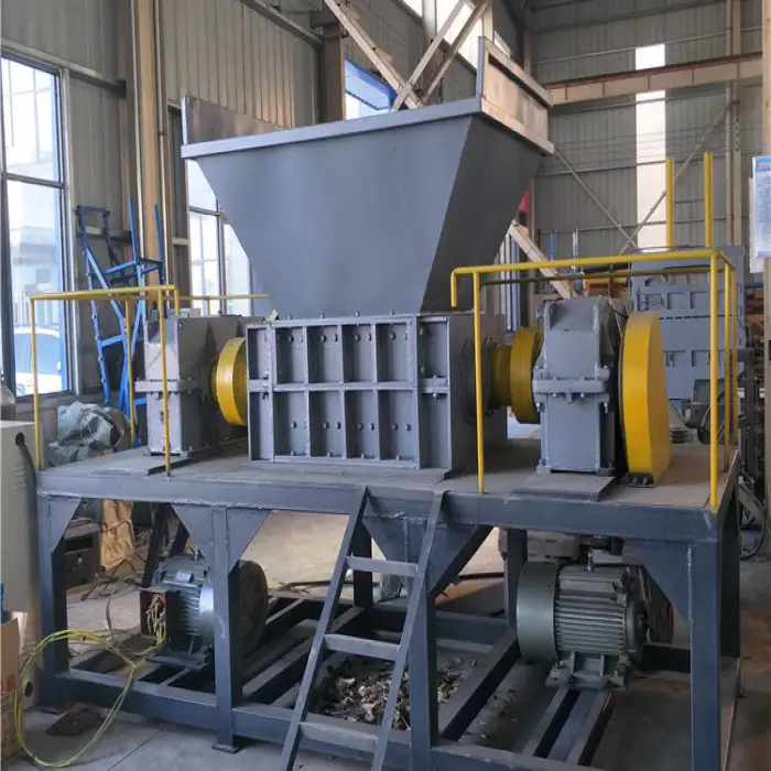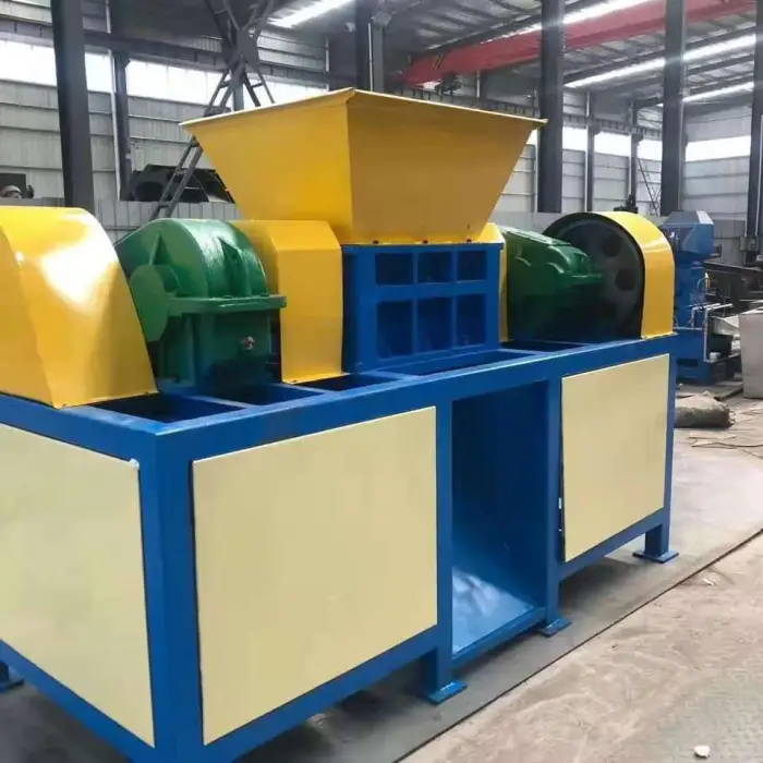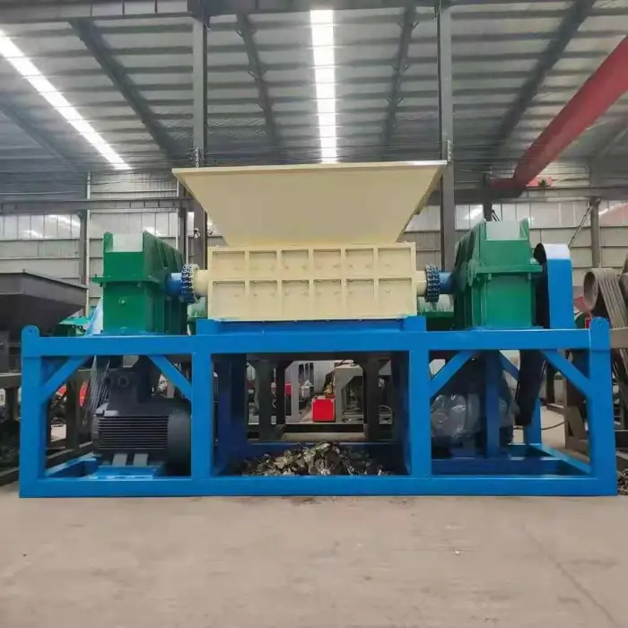 The Scrap Glass Bottles Recycling Shredder features a double shaft design for enhanced performance.