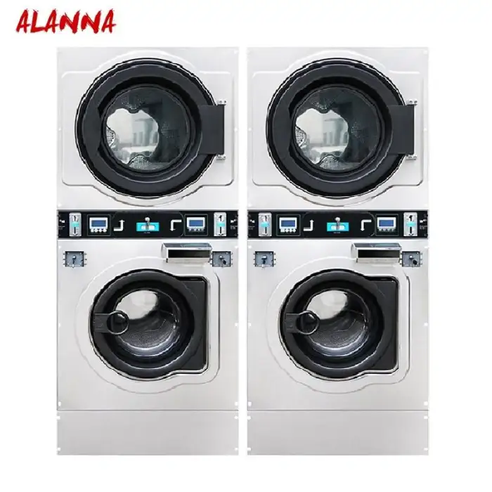 The Self Service Stack features Wi-Fi monitoring, allowing for remote management and oversight of laundry operations.
