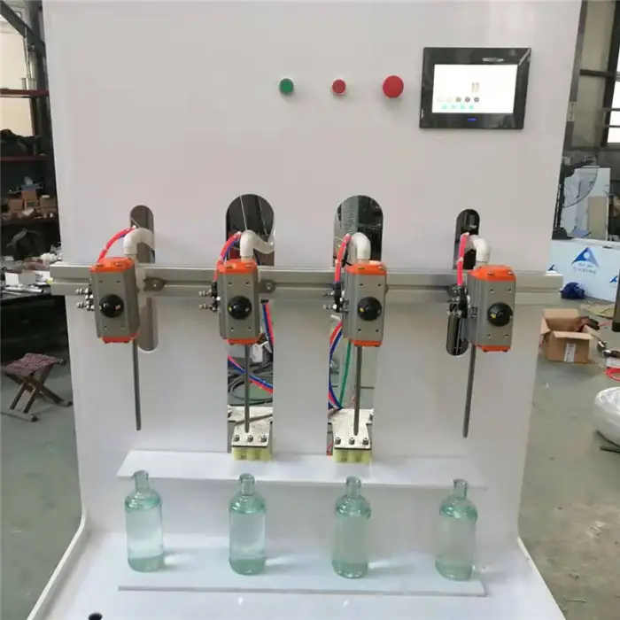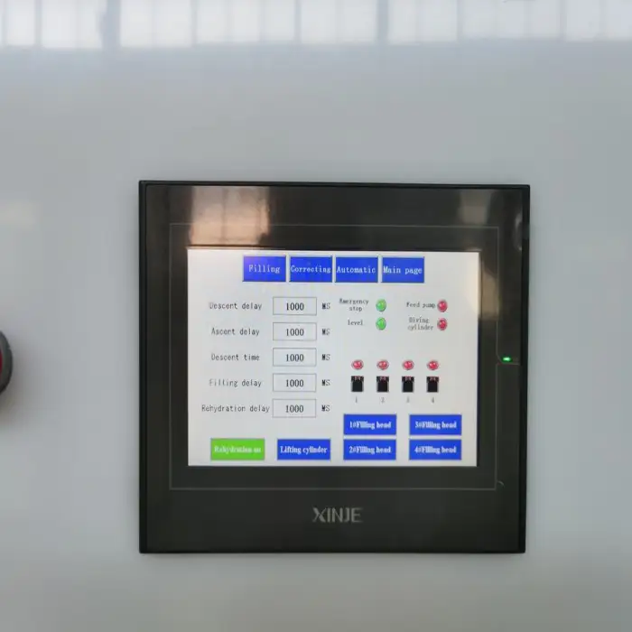 The machine is equipped with four filling heads, but it can be customized to have between 1 to 6 heads.