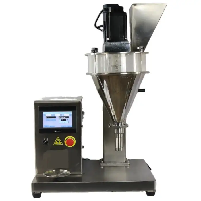 The Semi Automatic Small Table-top Powder Filler can fill various types of powders including wheat flour, pepper, chili spices, and other similar products.