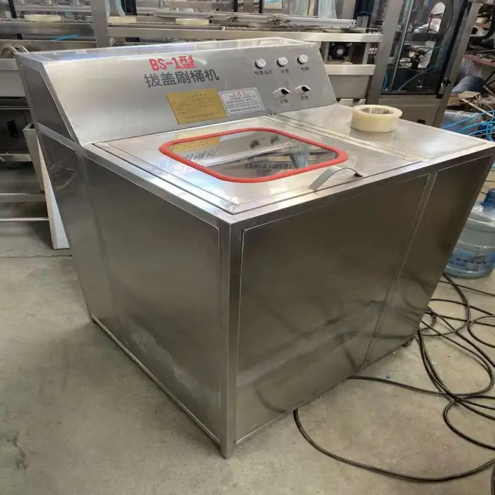 The machine has a cleaning capacity of 5 liters, suitable for 3 to 5-gallon bottles.