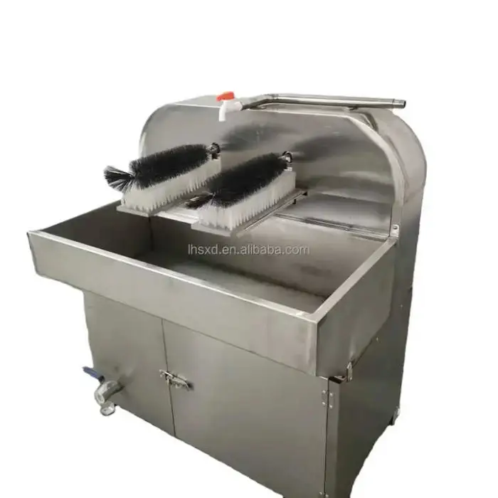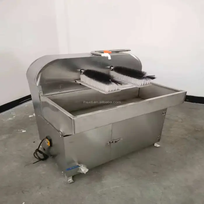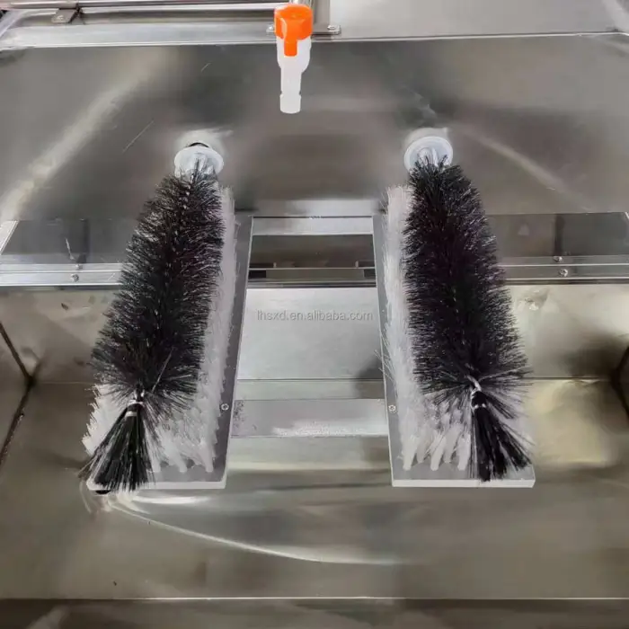 The machine has a brushing efficiency of 400 pieces per hour, allowing for quick and effective cleaning.