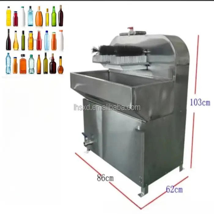 This machine is capable of cleaning a variety of bottle types including cosmetic bottles, beverage bottles, wine bottles, milk containers, and other liquid containers.
