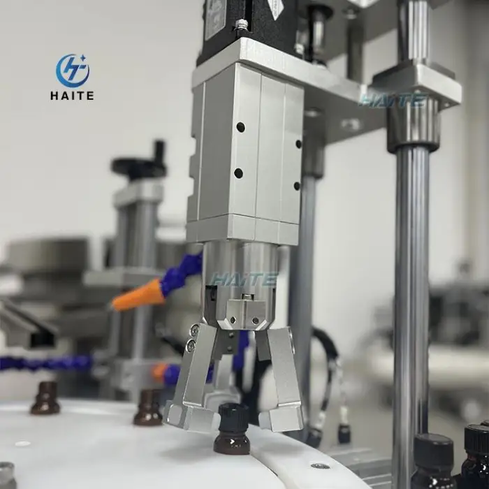 The pneumatic drive system ensures consistent and reliable performance throughout the filling and capping process.