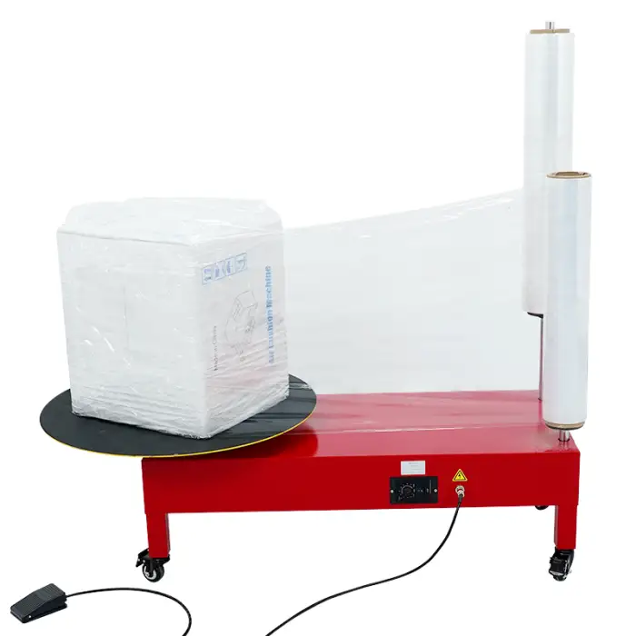 This machine is ideal for wrapping chemicals, apparel, textiles, machinery, and hardware, making it suitable for various industries.