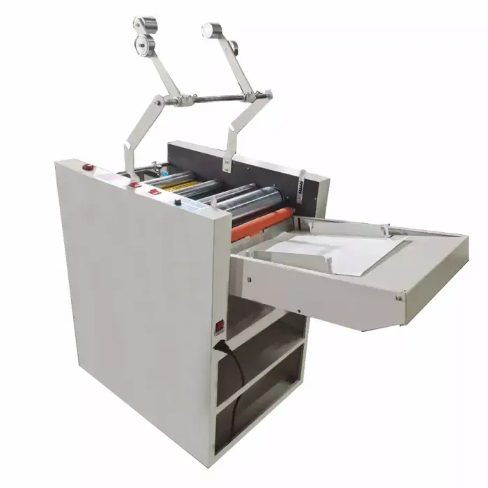 The machine can laminate materials with a thickness ranging from 60 to 800 gsm.