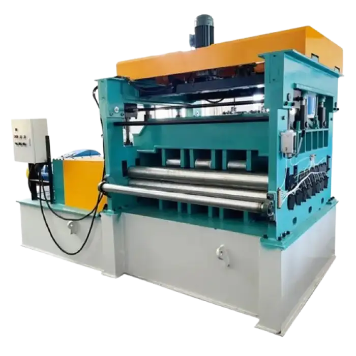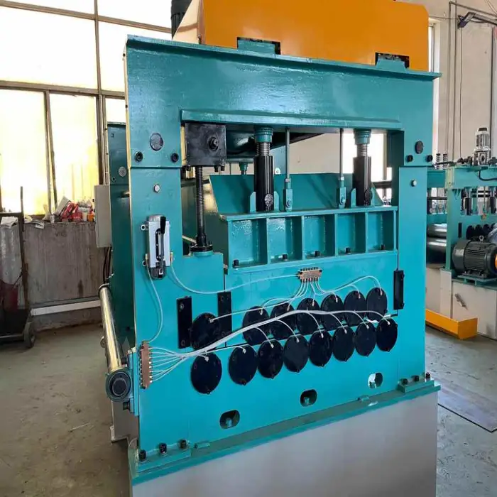 The machine is designed to straighten metal sheets and steel coils, making it suitable for various metal applications.