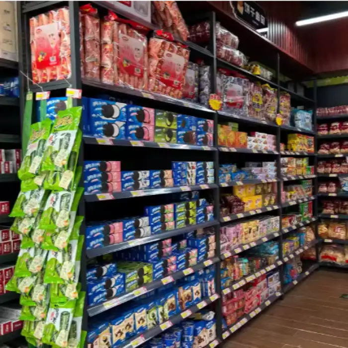 These shelves are perfect for use in supermarkets, retail stores, grocery stores, convenience stores, and warehouse setups for organizing and displaying products.