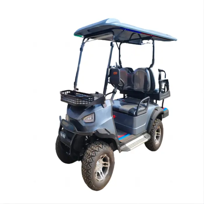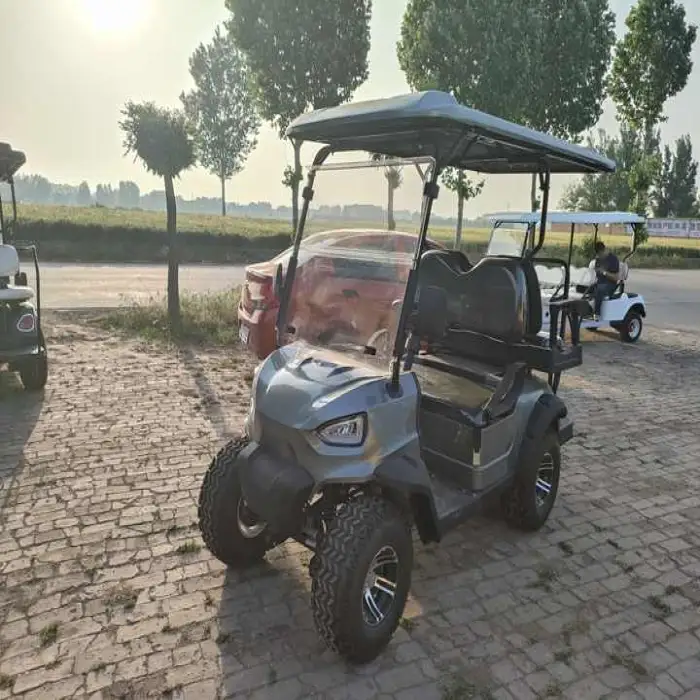 The dimensions of the Silver Gray Electric Golf Cart are 2770mm (L) x 1200mm (W) x 1850mm (H).