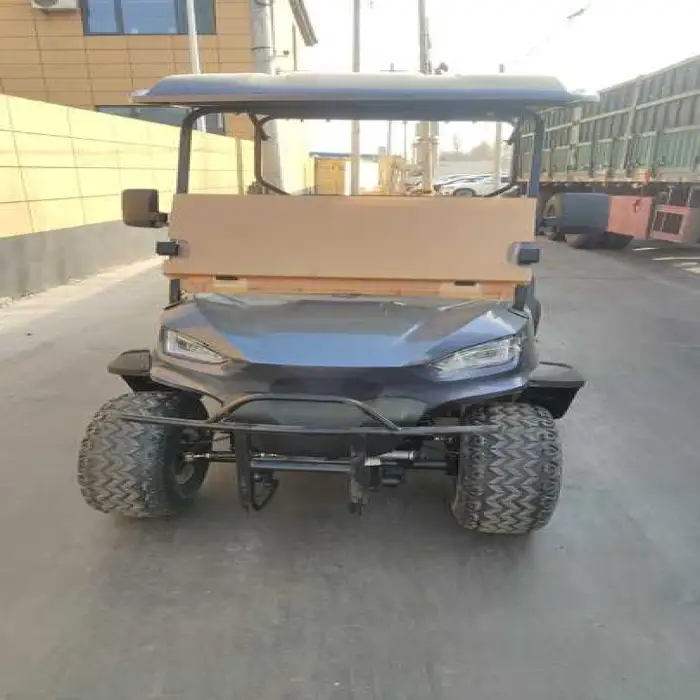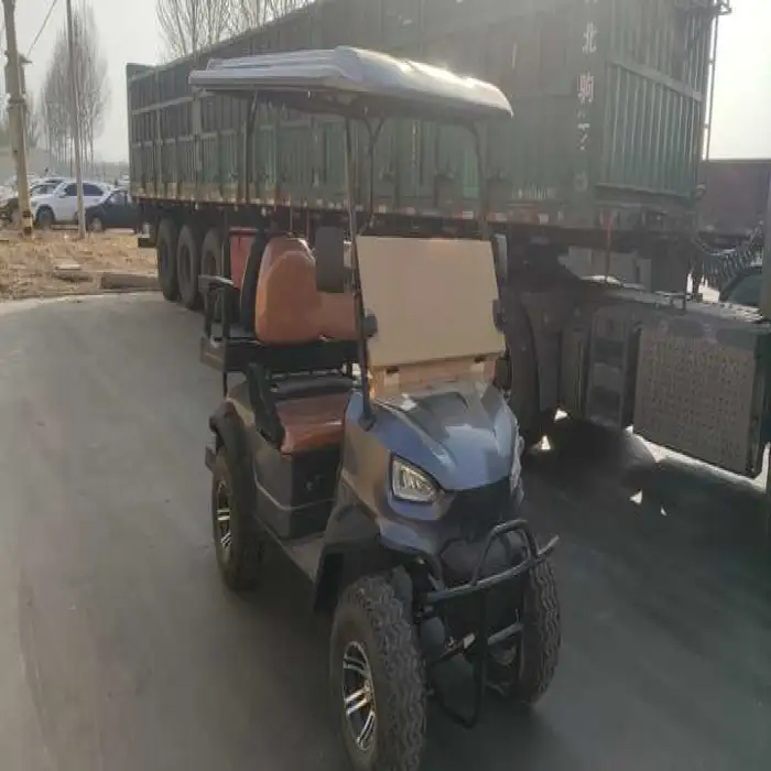 The driving range of the golf cart is between 70-110 km on a full charge.