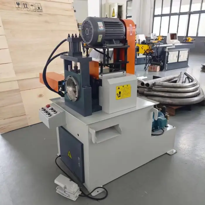 While the machine is specifically designed for round bars and pipes, it focuses on chamfering rather than edge finishing of flat metal plates.