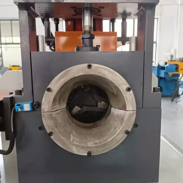 The machine is designed to handle various sizes of round bars and pipes, making it versatile for different manufacturing needs.
