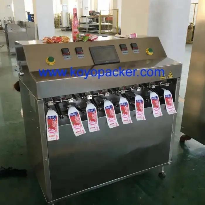 This machine is ideal for filling various types of beverages, including apple fruit juice, milk, and water, as well as other products packaged in stand-up pouches.