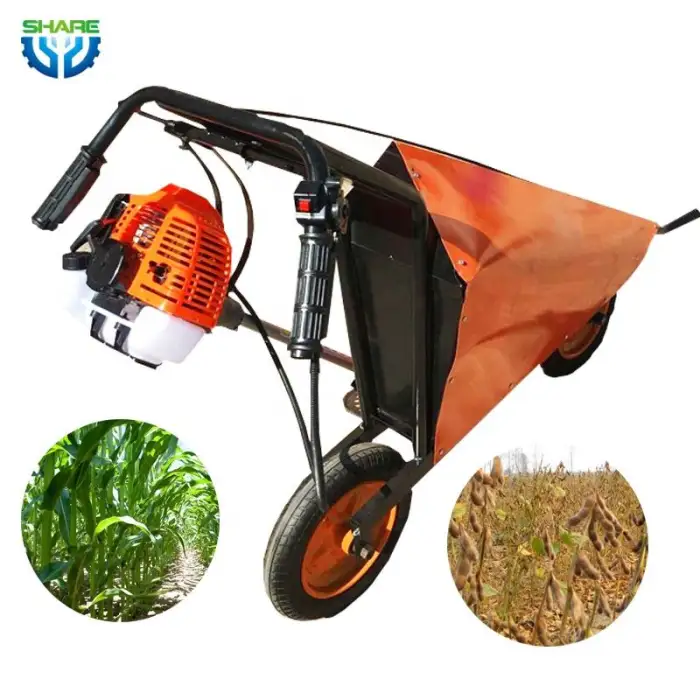 The Small Green Bean Harvester Mini Soybean Harvester is equipped with a gasoline engine.